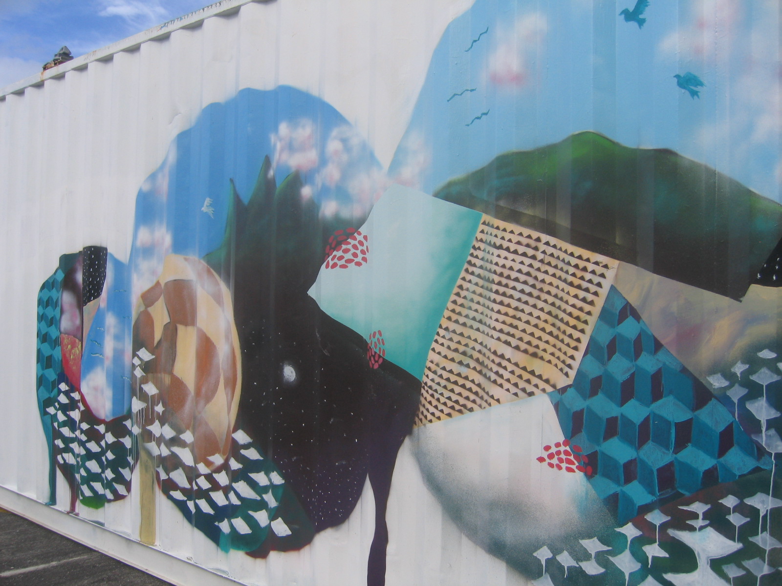 I took these photos of the new art exhibit in one of the containers on the wharf in front of The Cloud.